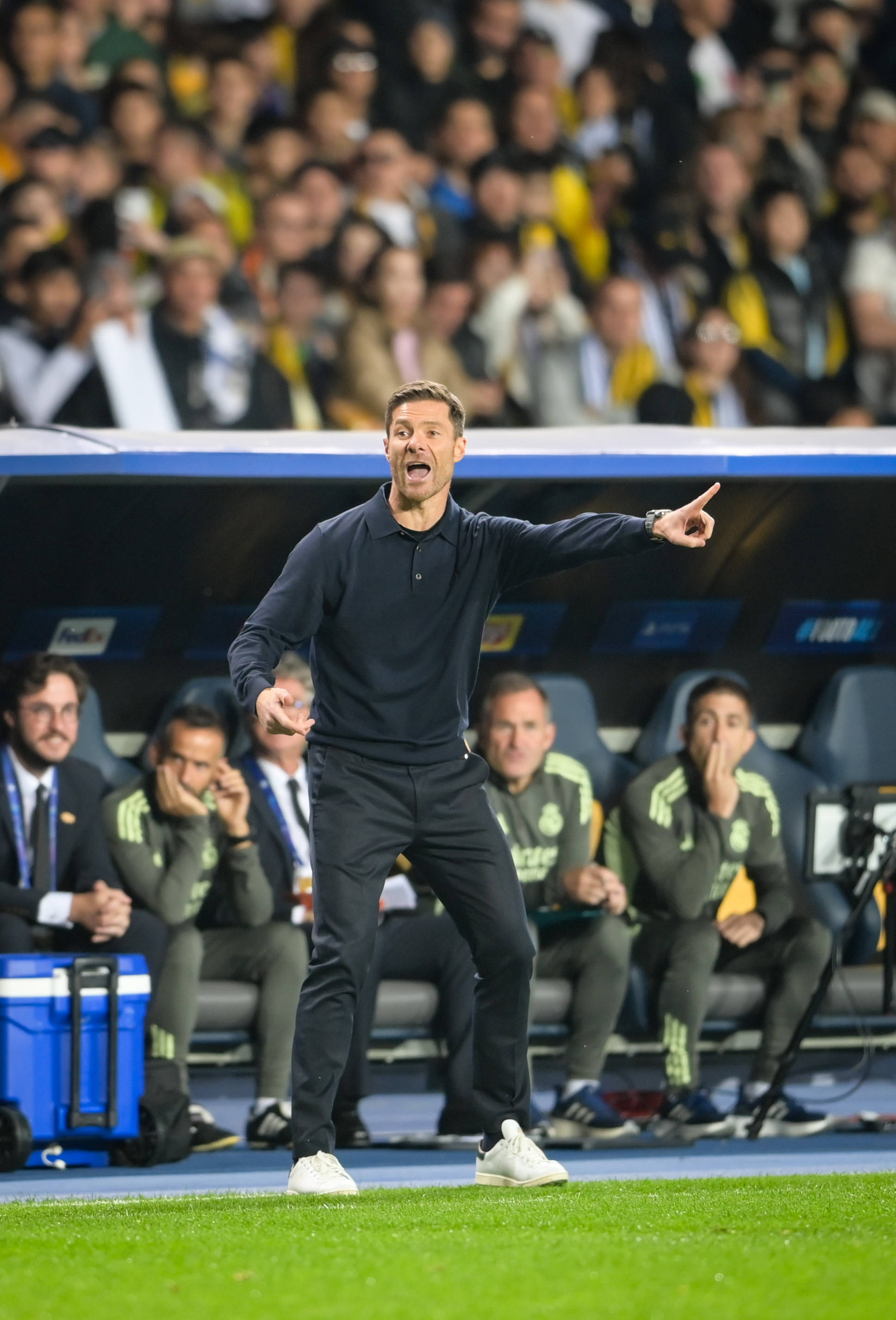 9月30日,皇家马德里队主教练阿隆索在场边指导。 新华社记者 李任滋 摄