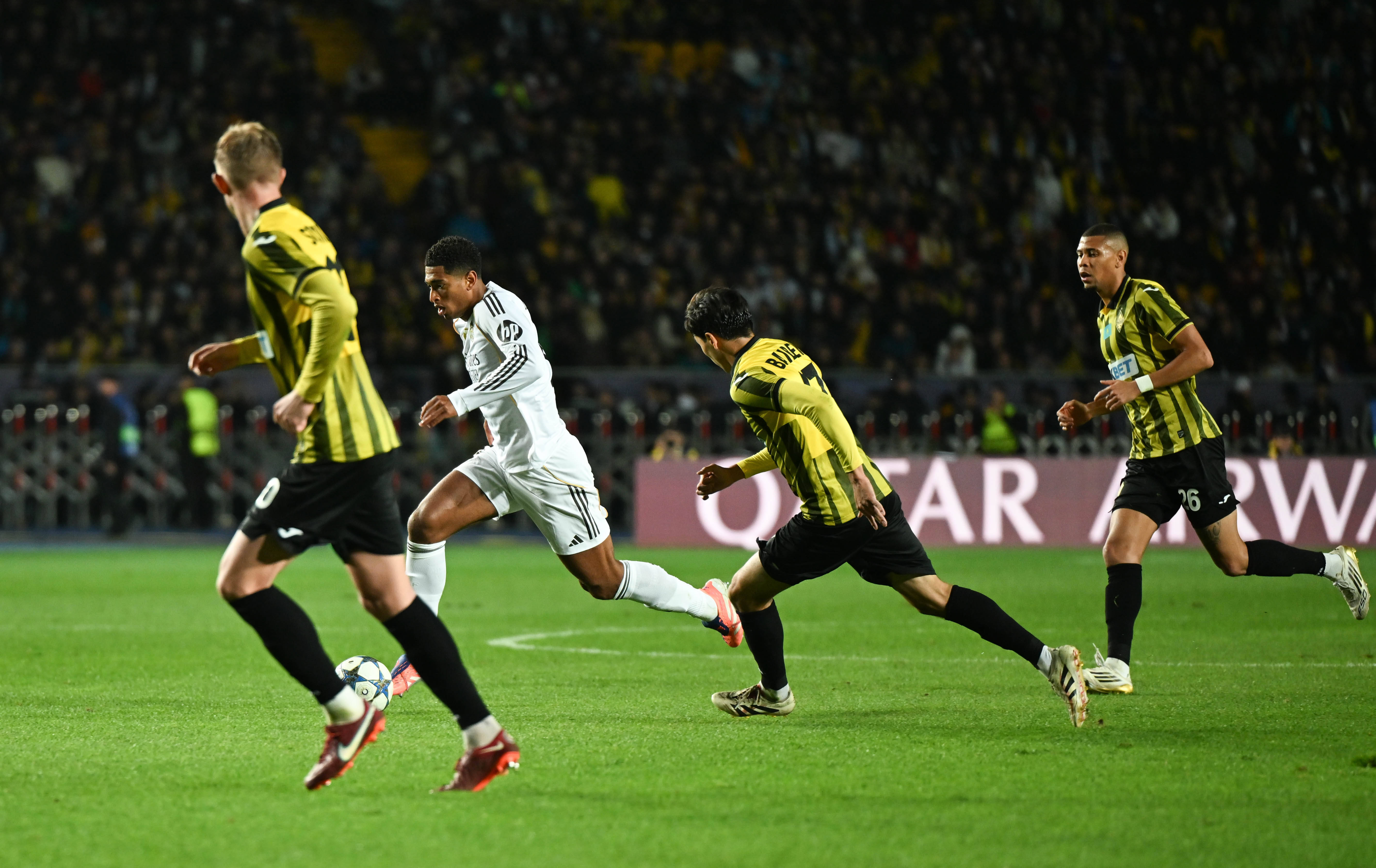 9月30日,皇家马德里队球员贝林厄姆(左二)在比赛中突破。 新华社记者 李任滋 摄