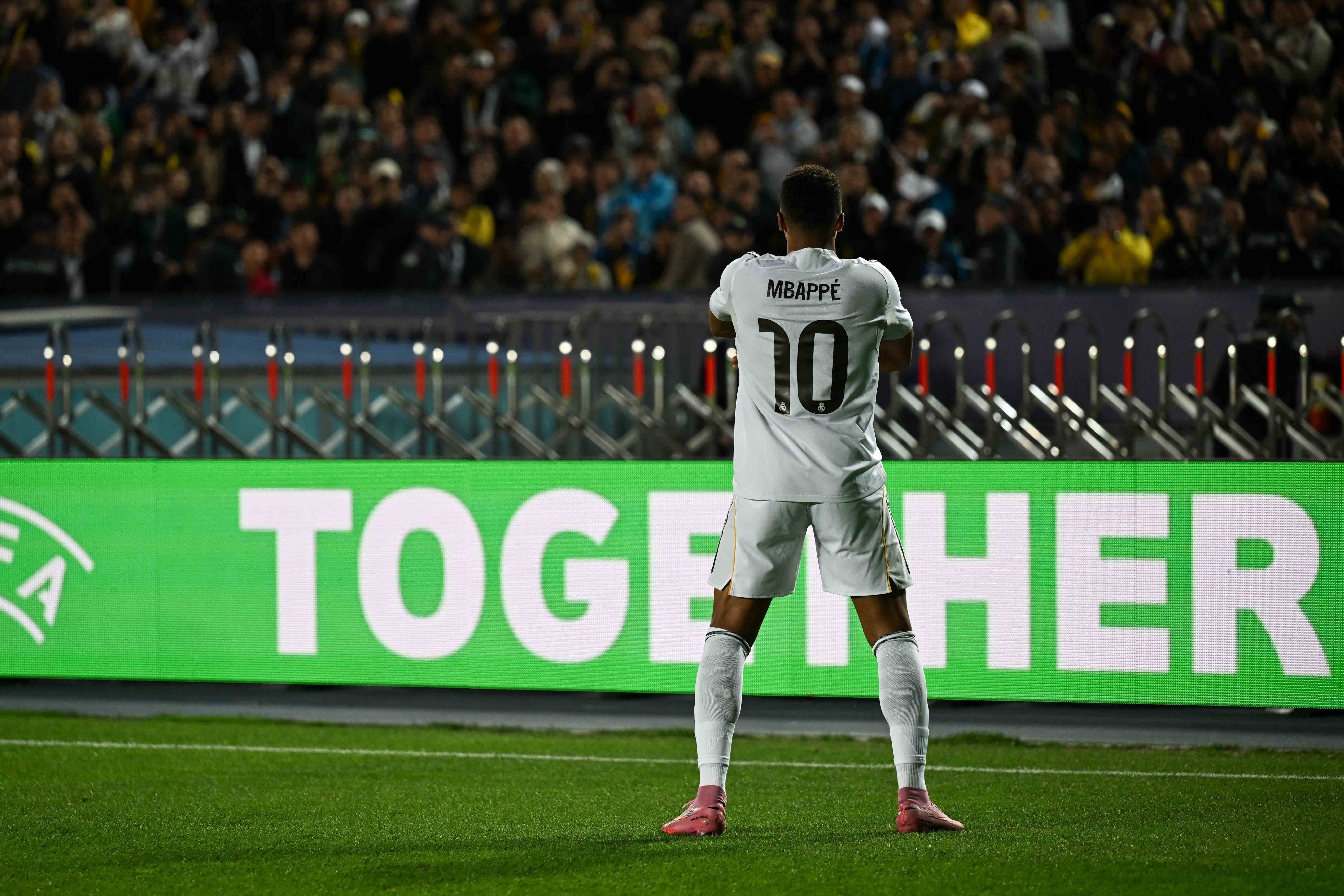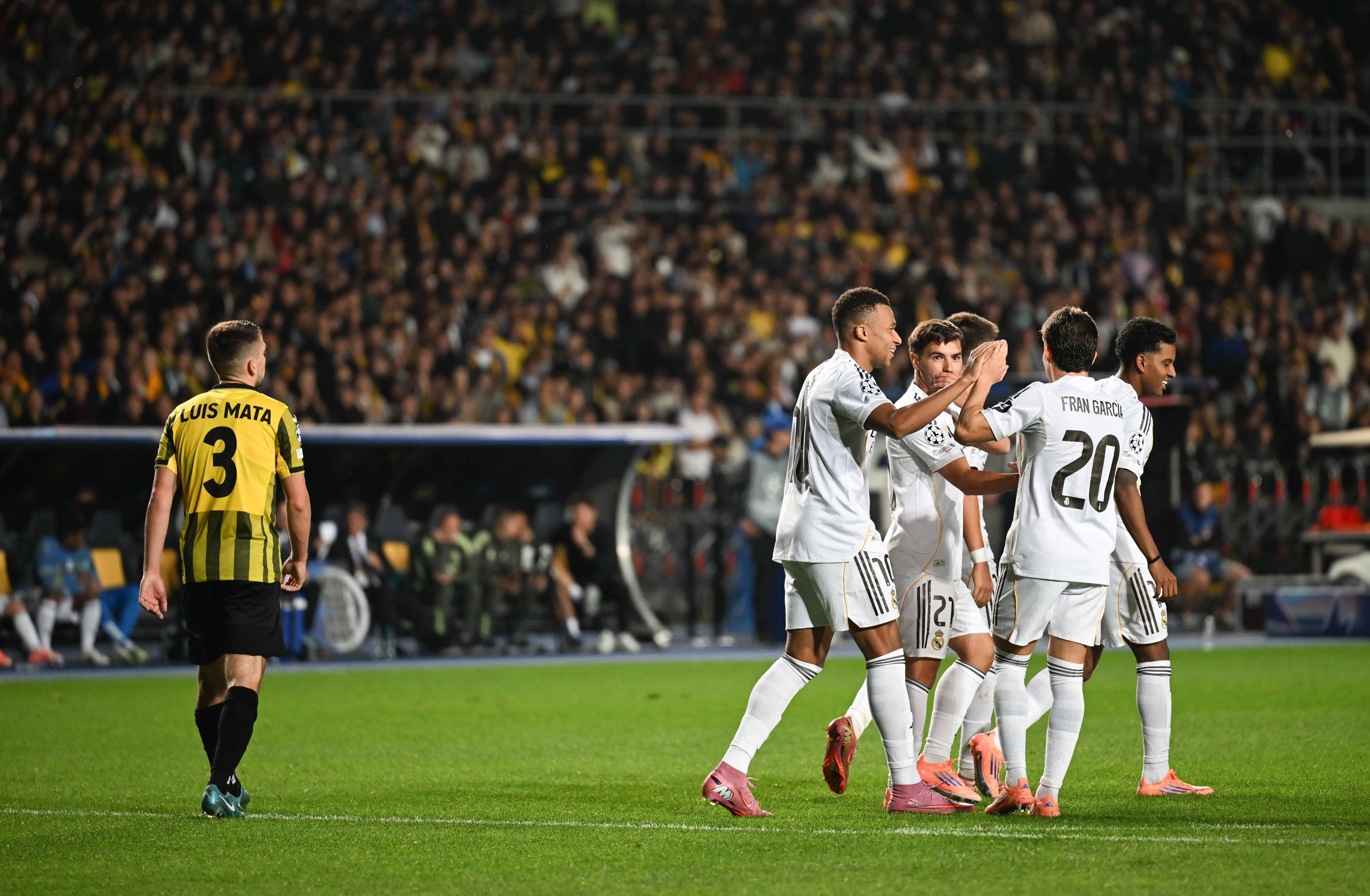 9月30日,皇家马德里队球员姆巴佩在比赛中庆祝进球。 新华社记者 李任滋 摄