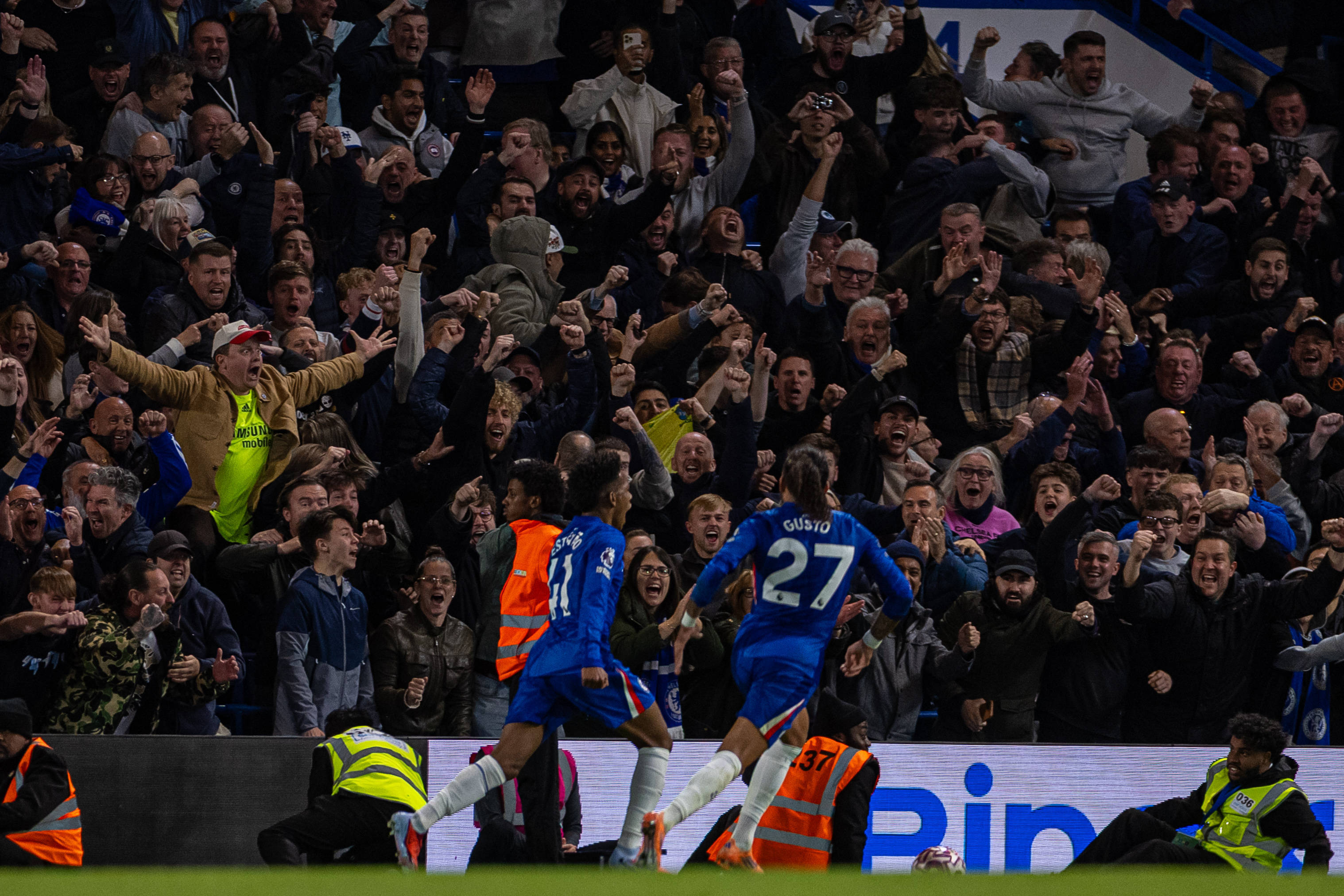 10月4日,切尔西队球员埃斯特旺在比赛后庆祝,他在下半场补时阶段进球,帮助球队获胜。 新华社发