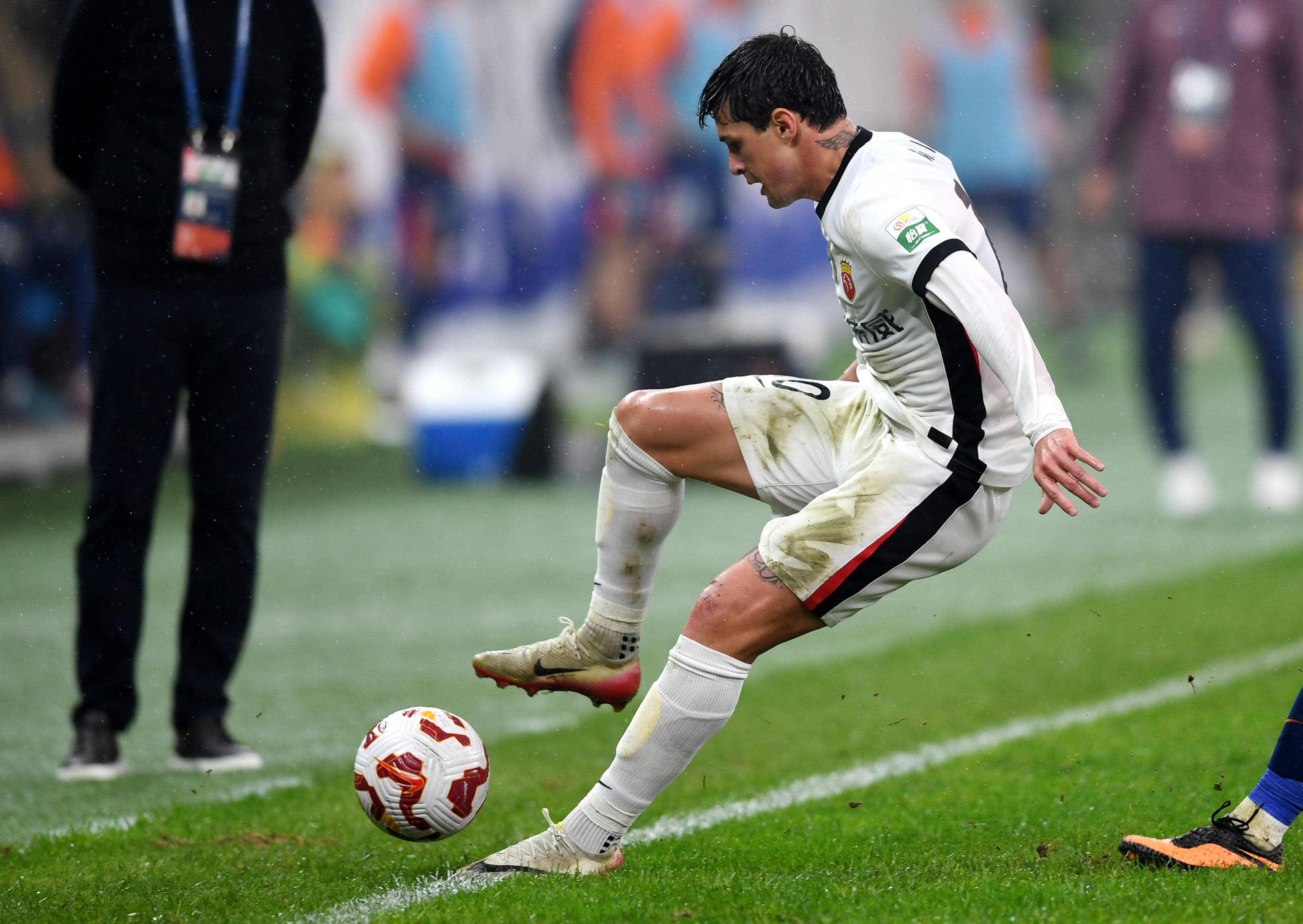 10月17日,上海海港队球员马特乌斯·维塔尔在边线控球。 新华社记者 李紫恒 摄