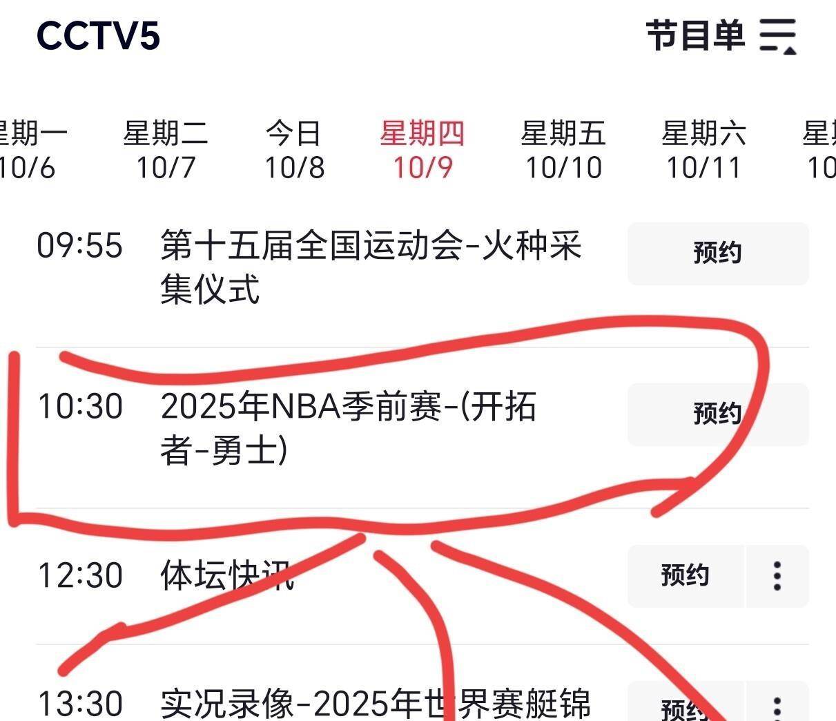 体育,足球,波胆,反波胆,角球,串关,大小球,世界杯,欧洲杯,比分,足球比分,赛事,足球赛事,电竞赛事,体育赛事直播,足球直播平台,世界杯直播,足球直播,体育直播,NBA直播,游戏直播,LOL直播北京时间10月9日上午10点30分,中央电视台体育频道CCTV5准时直播NBA季前赛开拓者对阵勇士的比赛。 节目表显示,CCTV5在上午9点55分播出第十五届全国运动会火种采集仪式后,随即切换至NBA转播。