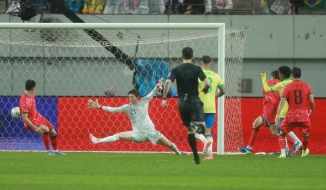 下半场,韩国队的防守依旧出现问题,金朱晟与金玟哉的配合失误让埃斯特旺再次破门,3-0!紧接着,巴西队通过快速反击,再次扩大比分,最终以5-0锁定胜局。这是韩国队与巴西交锋以来的最大失利,尤其是在上一场比赛1-5落败后,这次未能进球的结果,更加显现出两队之间的差距。