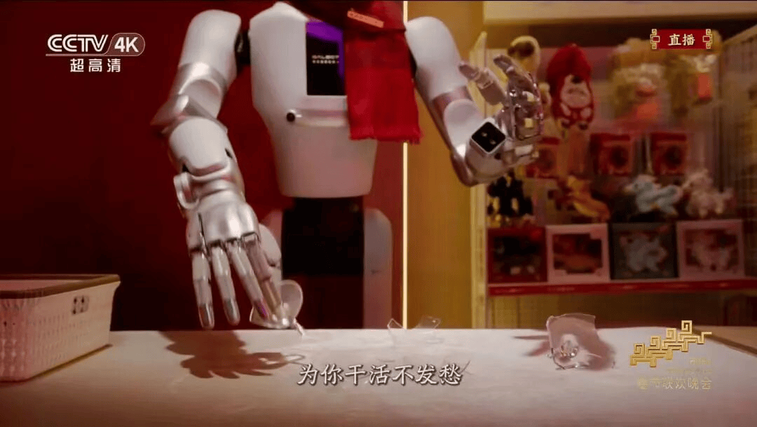 春晚舞台上,中国人工智能产业在全国观众面前“大阅兵”:豆包用AI生成影像构建出全新的舞台视听叙事;火山引擎的智能视频云画质增强服务让手机竖屏直播也能拥有“掌中剧场”的极致体验;银河通用人形机器人叠衣服、盘核桃、串烤肠,手指灵活、干活麻利……