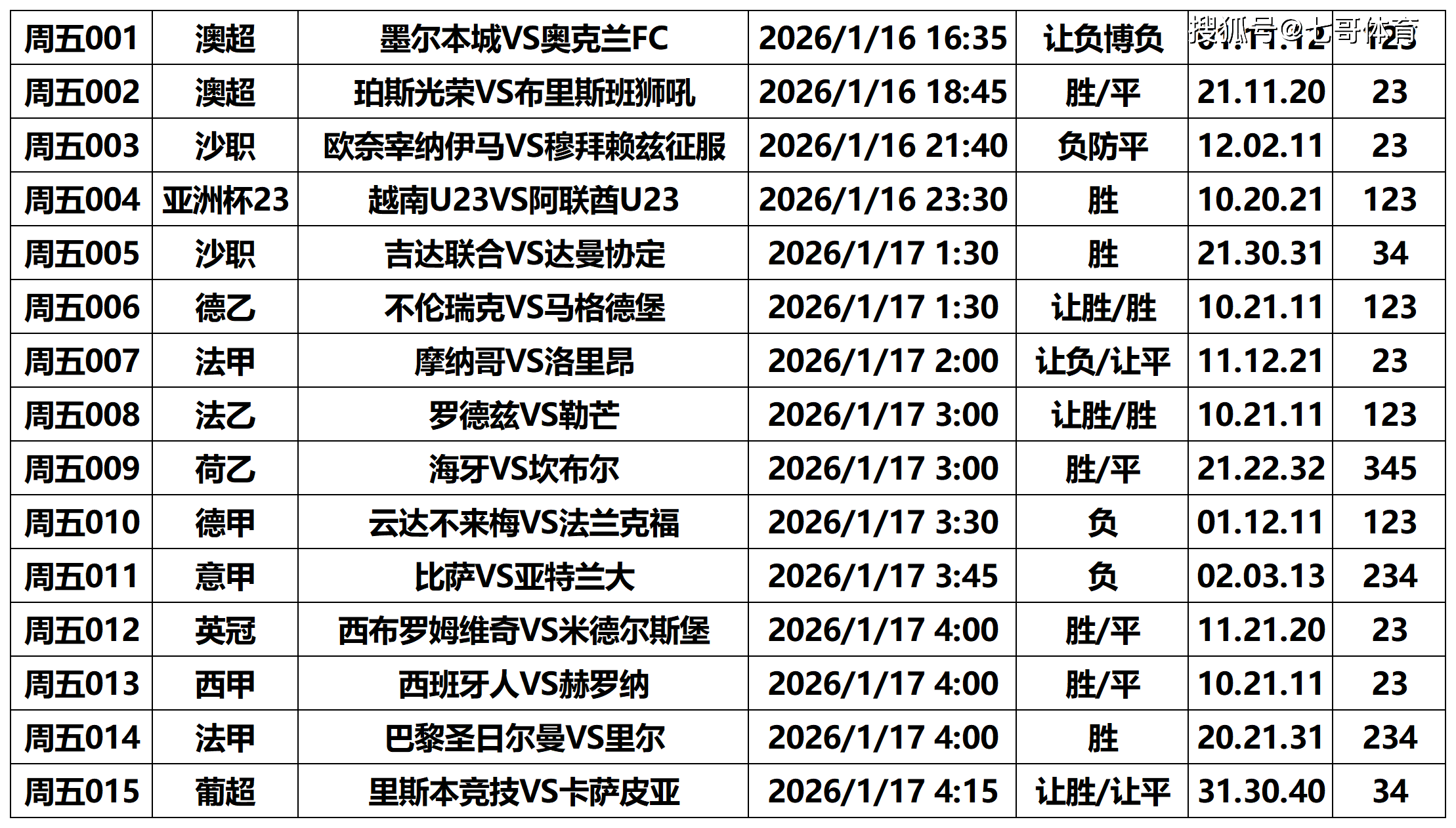 体育比赛直播_足球_波胆_买球_篮电竞_在线投注今日足球推荐1月16日周五【15场赛事胜平负比分全攻略 】