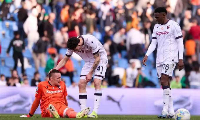 在英格兰维拉公园球场,博洛尼亚以0-4惨败给阿斯顿维拉,两回合总比分1-7被冷酷淘汰。这场失利并非偶然,博洛尼亚球队早在出征前就已经伤兵满营,包括主力门将斯科鲁普斯基在内的多名关键球员无法上阵,大幅削弱了整体战斗力。在攻防两端完全失控的情况下,博洛尼亚无力抵挡对手的猛烈攻势,被连进四球,最终黯然离场。